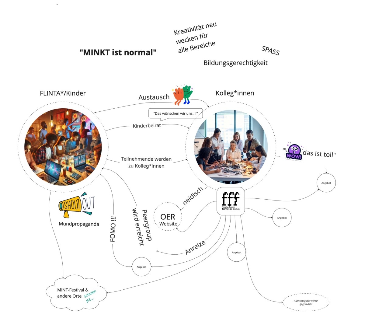 Besonders wichtig ist uns dabei die gezielte Förderung von FLINTA*-Personen (Frauen, Lesben, Inter*, Nicht-binäre*, Trans* und Agender*), die oft zu wenig Zugang zu technischen Themen erhalten. Durch die Verbindung von Technik und Kreativität entstehen neue Zugänge, die zum Mitmachen und Selberdenken einladen.